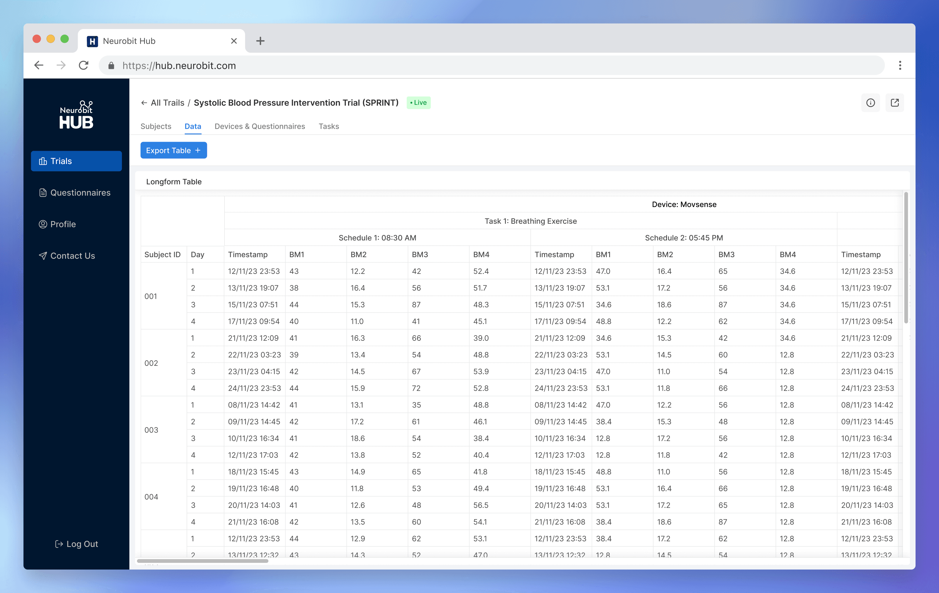 The long-form table has a distinctive architecture that captures every aspect of a trial, including details about devices, subject tasks, individual subjects, and more.