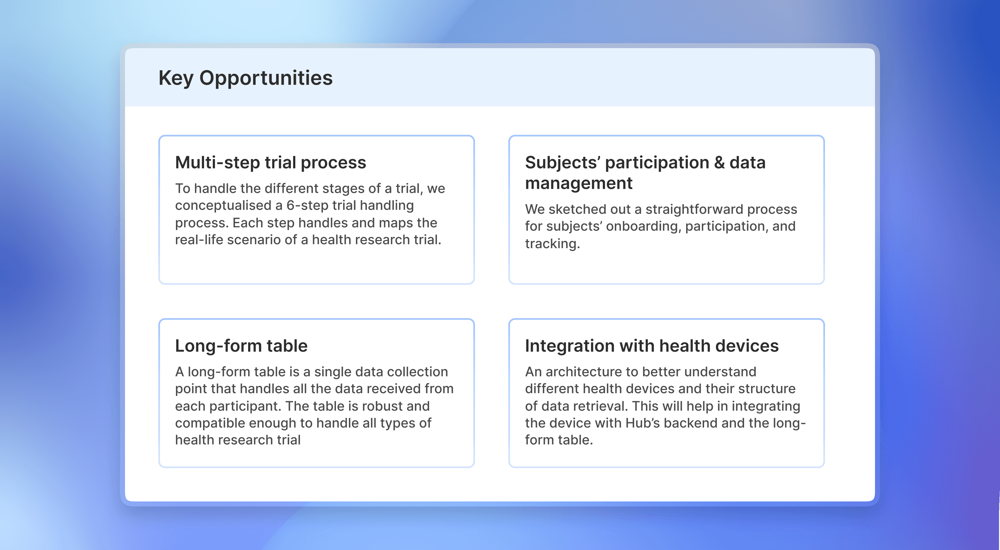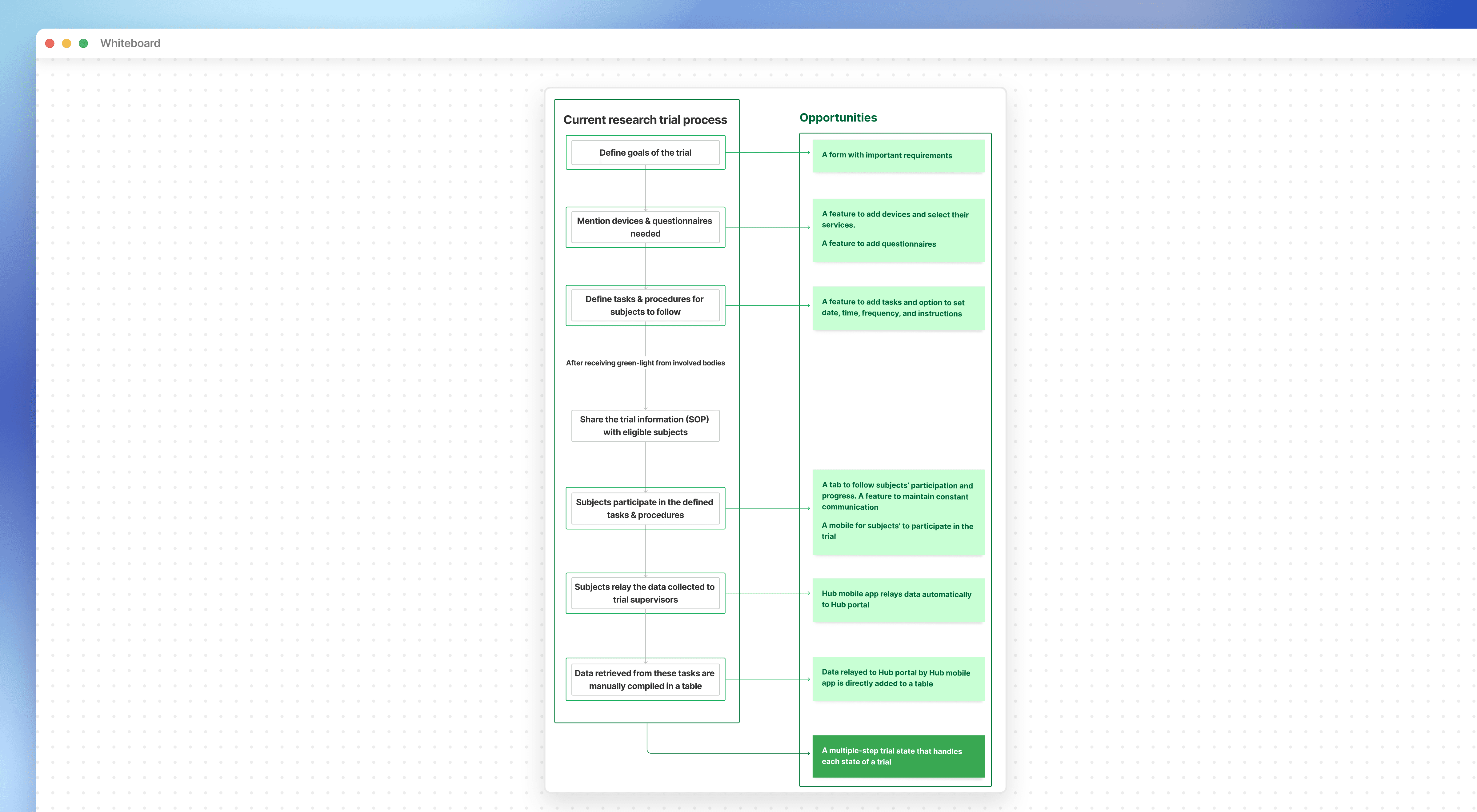 I conducted secondary research to understand better how clinical trials are conducted. Another goal of this process was to get acquainted with the terminologies involved in these trials.