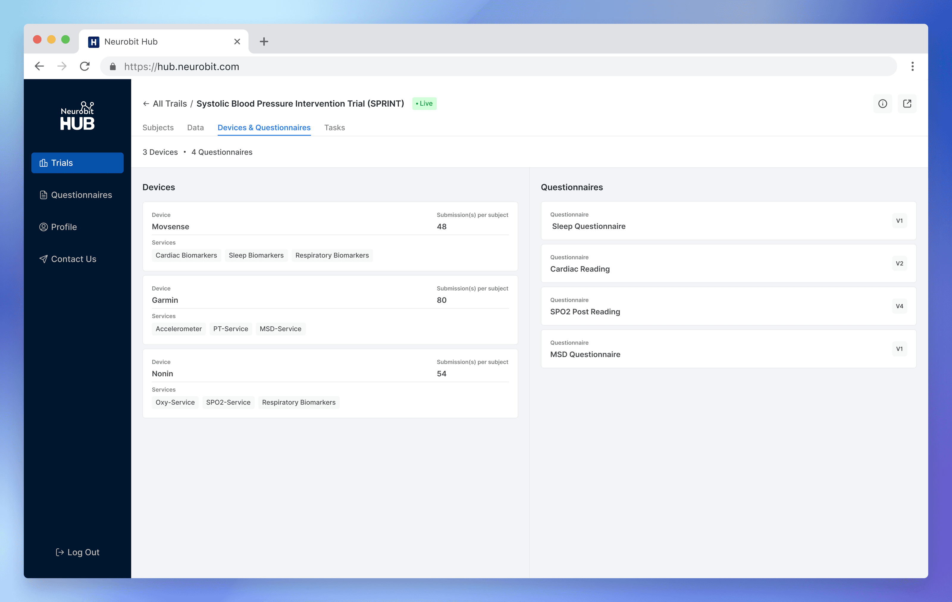 1. Health devices & questionnaires are involved in each trial